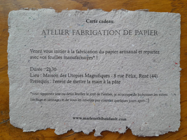 Si vous souhaitez un envoi de la carte cadeau imprimée sur papier artisanal, sélectionnez l'option correspondante. Je prendrai plaisir à la façonner et à l'envoyer par courrier à la personne et à l'adresse que vous m'indiquerez au moment du paiement :)
